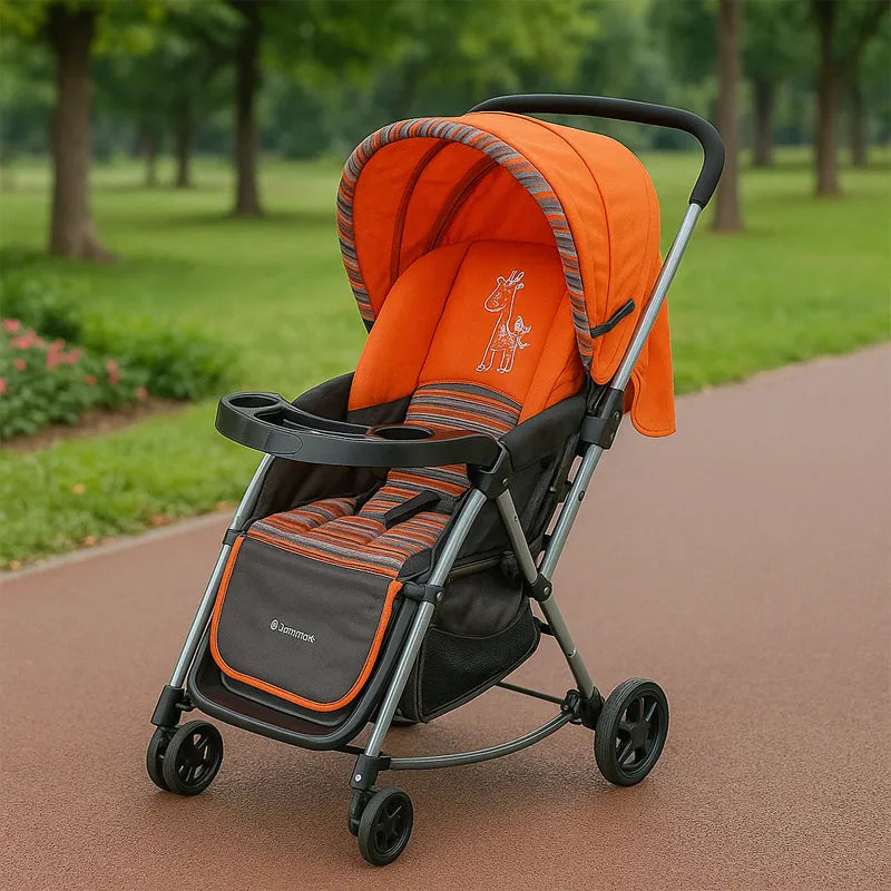 Ensure comfort and safety for your baby with this Lightweight Baby Stroller. Designed with a bright orange canopy and padded seat, it combines convenience for parents and comfort for children. Perfect for outdoor walks, shopping trips, or daily use, this stroller is easy to handle and carry.