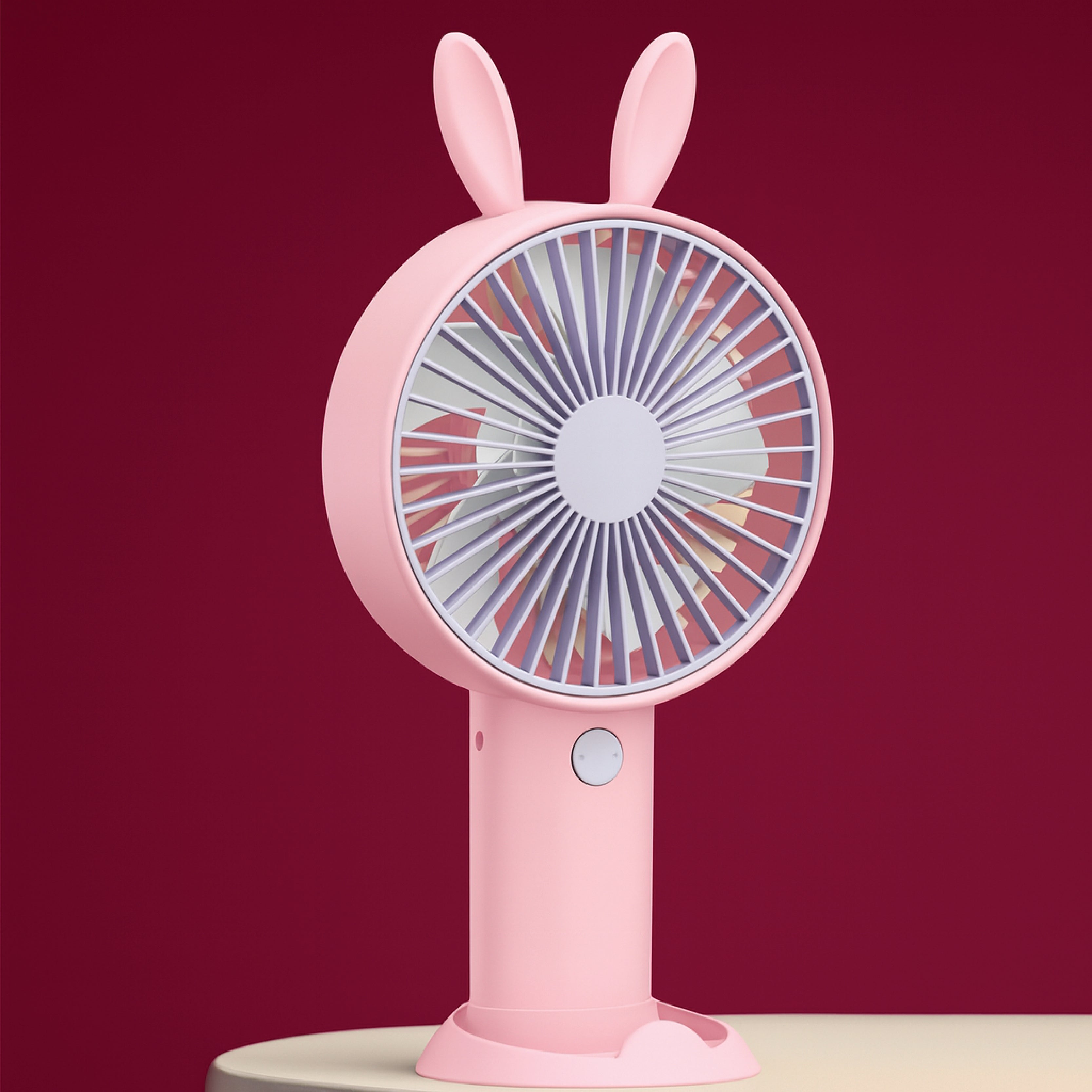 Stay cool and stylish with this Cute Bunny Ear Mini Fan, designed with an adorable rabbit-ear shape and soft pastel pink color. Perfect for kids, teens, and adults, this portable fan is lightweight and easy to carry for school, office, travel, or home use.