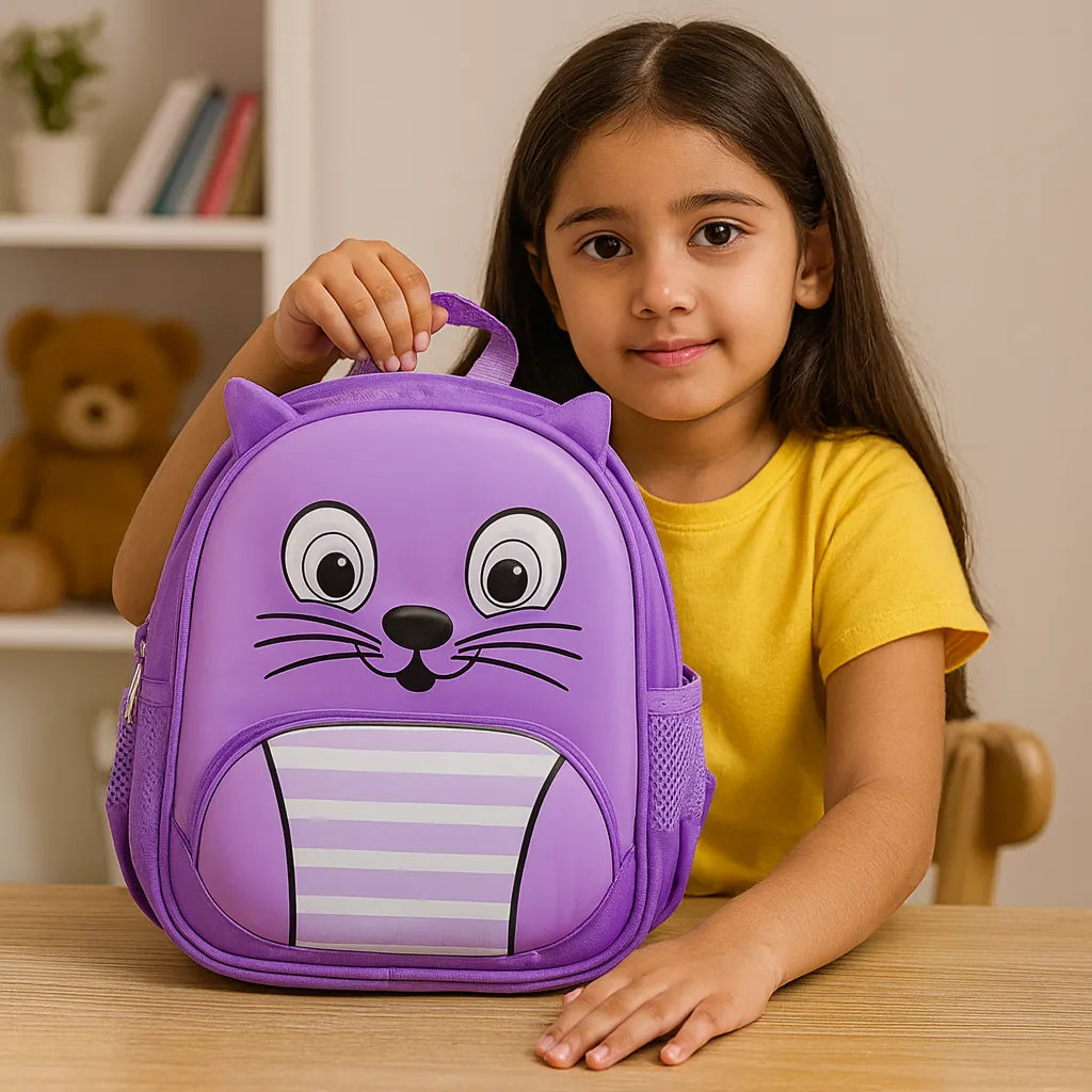 Make school time exciting with this adorable Purple Cat Backpack! Designed with a fun cartoon cat face, this backpack is both playful and practical, perfect for preschool and early school kids. Its lightweight design and durable build make it ideal for daily use.