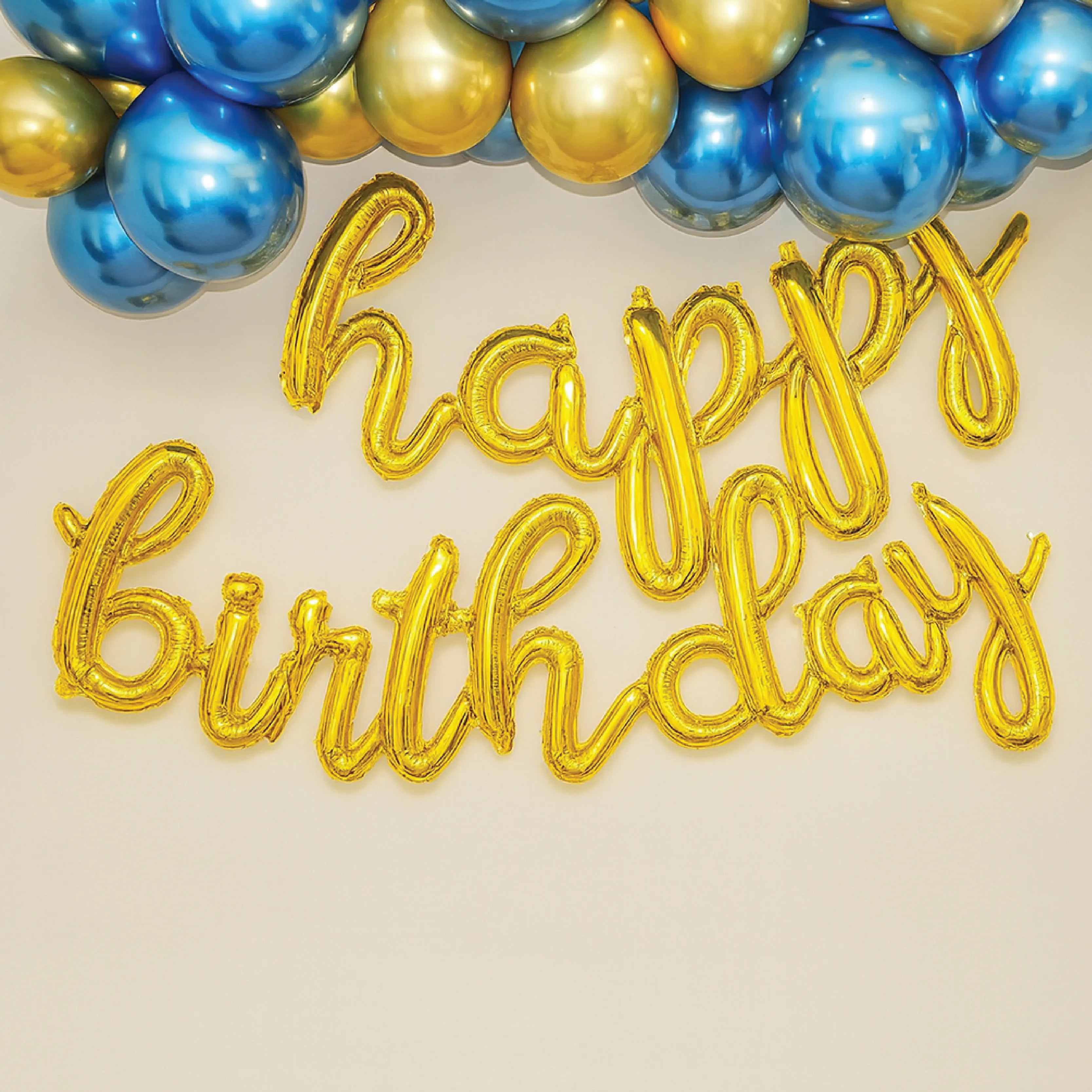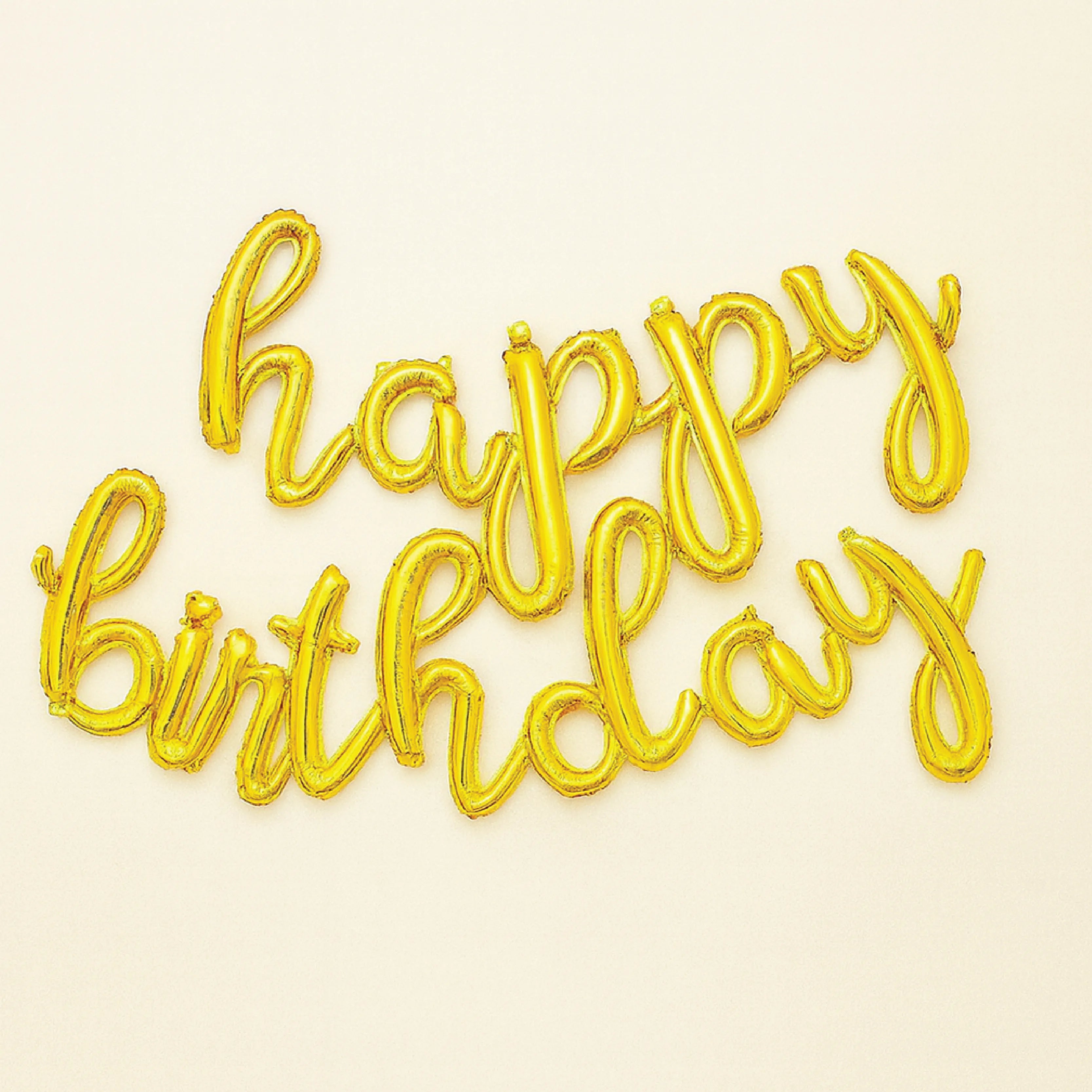 Make every birthday sparkle with this elegant golden “Happy Birthday” foil balloon set! Perfect for decorating walls, party backdrops, or dessert tables, it adds a cheerful shine to any celebration. The vibrant metallic gold finish creates a luxurious look that instantly uplifts your décor. Each letter inflates to form a beautiful display, making it perfect for both kids’ and adults’ birthdays. Easy to inflate and reusable, these balloons offer great value for every event. Pair them with confetti balloons or streamers for a stunning party theme. Celebrate in style with this timeless birthday essential!