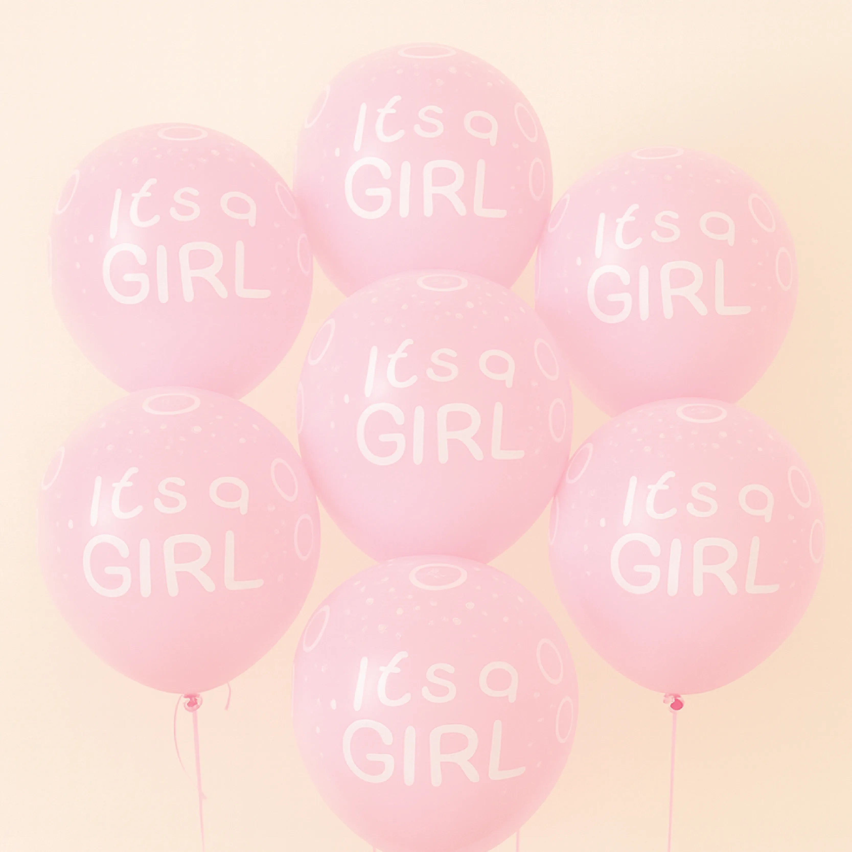 Includes: Baby-shaped foil balloon, “It’s a Girl” foot foil balloon, milk bottle balloon, and pink latex balloons