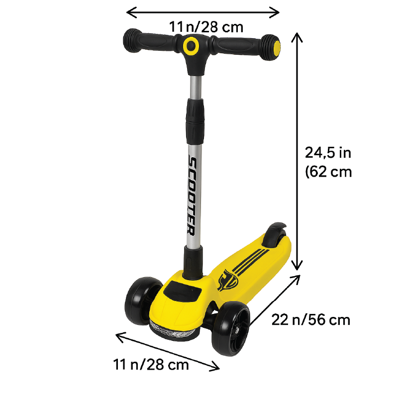 Zoom into fun with the Kids 3-Wheel LED Scooter! Designed with a stylish car-shaped front and vibrant colors, this scooter combines adventure, safety, and excitement in one ride. Its wide deck and three-wheel structure ensure extra balance and stability for young riders. The adjustable handlebar grows with your child, and the LED light-up wheels add a dazzling touch for both day and night rides. Perfect for indoor and outdoor fun!