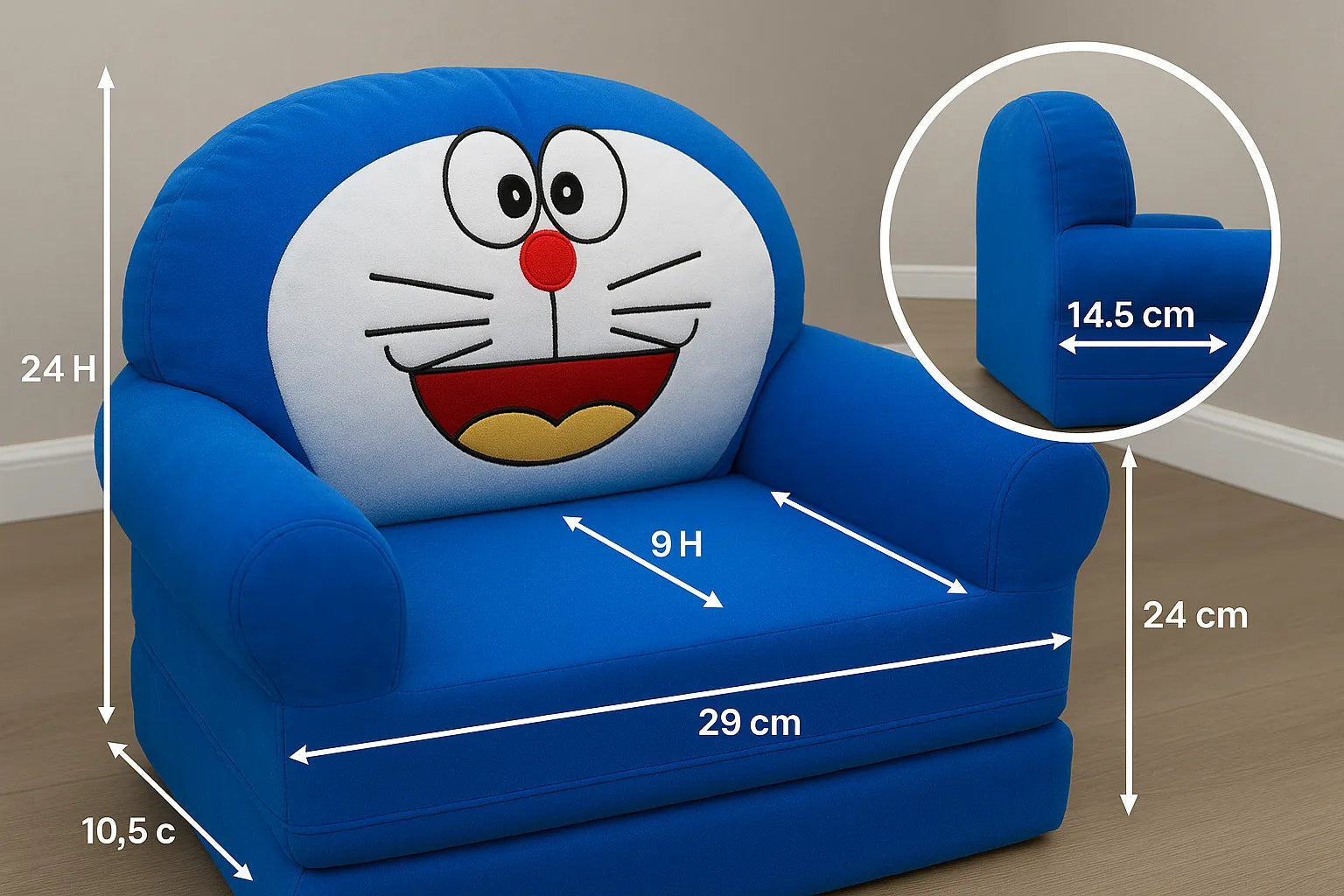 Make your child’s relaxation time even more exciting with this Kids Doraemon Sofa Chair! Featuring the iconic Doraemon face, this sofa adds a touch of playfulness and comfort to any kid’s room. Its high-density foam and plush fabric provide excellent support, while the adorable blue color and cheerful design make it a favorite spot for reading, playing, or watching cartoons. Perfect for little Doraemon fans who love cozy comfort and character-inspired furniture!