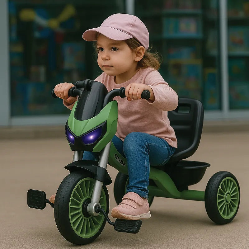 Sporty Design – Bike-style tricycle look with bold details.