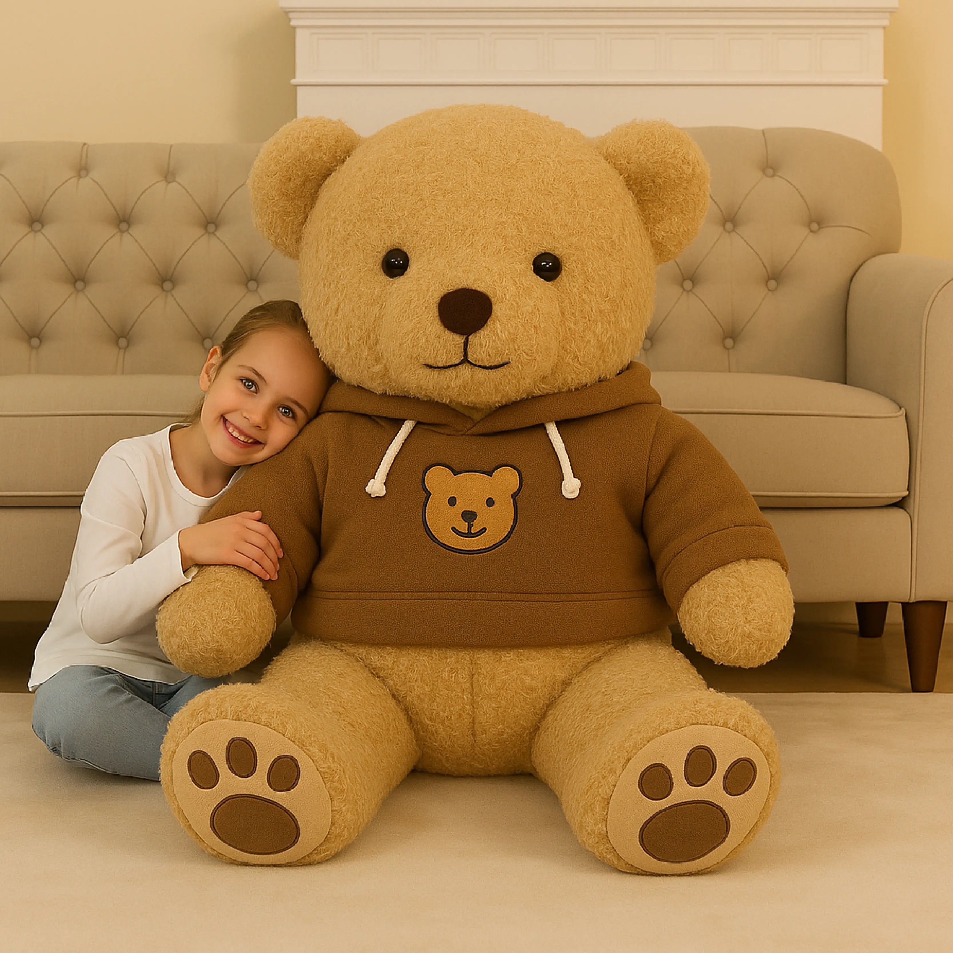Make every cuddle extra special with this large hoodie teddy bear plush toy (40–60 cm). Crafted with ultra-soft plush fabric, this adorable bear wears a cozy hoodie with a cute bear-face print, making it both huggable and stylish. Its generous size makes it perfect for kids to snuggle with or for adults to use as a decorative statement in bedrooms and living rooms. A perfect choice for birthdays, Valentine’s Day, baby showers, or as a thoughtful gift for your loved ones.