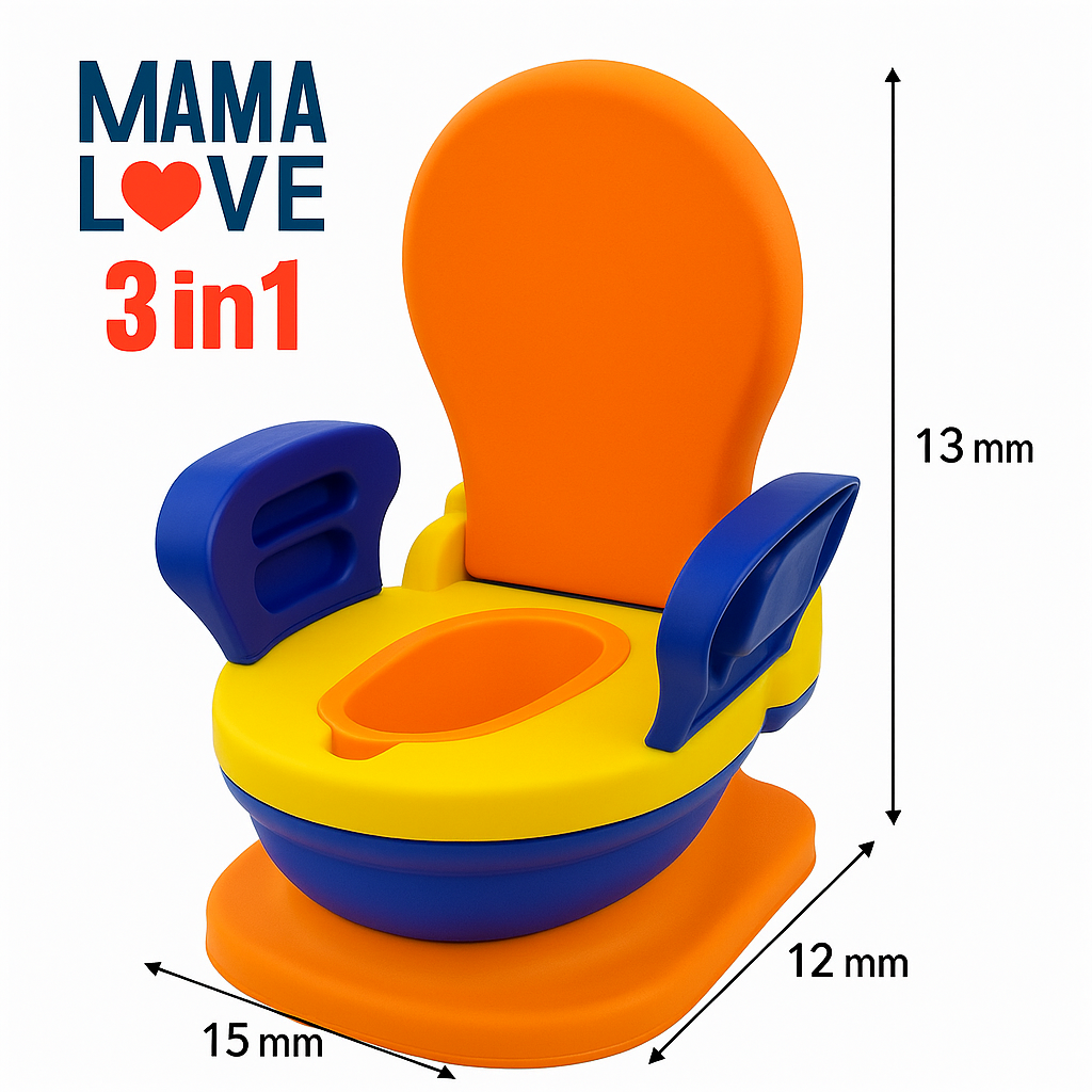 Make potty training easier and more comfortable with the Mama Love 3-in-1 Baby Potty Seat! Designed with bright, engaging colors and a sturdy build, this multi-purpose potty chair grows with your child. It functions as a potty seat, toilet trainer, and chair, helping toddlers transition smoothly from potty time to independent toilet use. The ergonomic seat with a high backrest provides maximum comfort and support, while the removable inner bowl ensures easy cleaning. Perfect for home training and travel, this potty is both fun and functional.