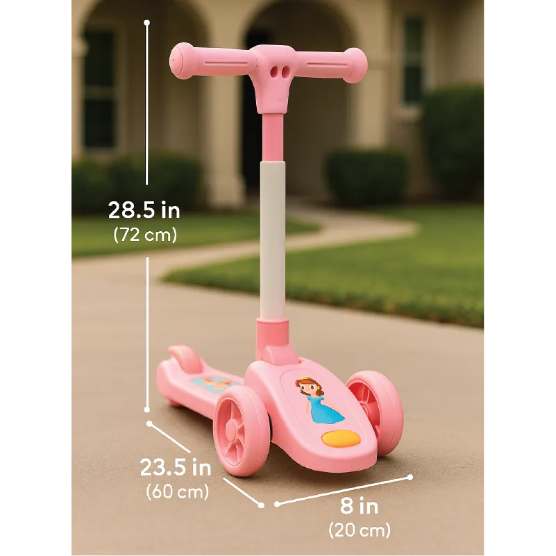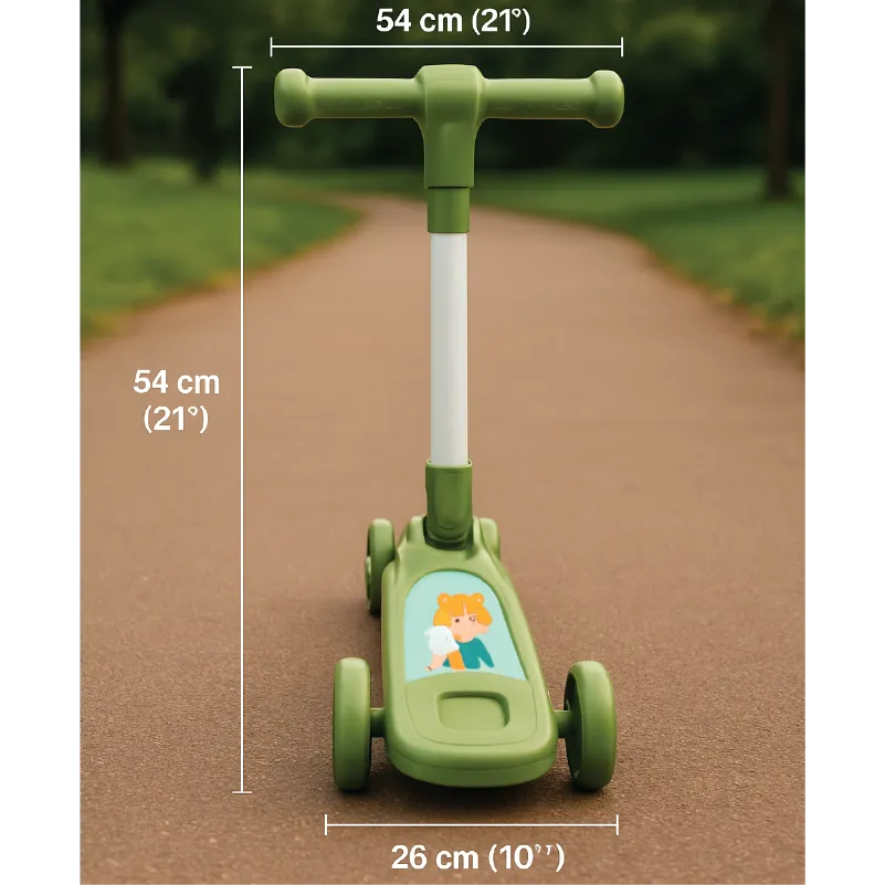 The Mini Balance Kids Scooter is perfect for your little one’s first adventure on wheels! Designed with a wide anti-slip deck and stable three-wheel structure, it provides a safe and easy riding experience for toddlers. The handlebar is comfortable to grip and perfectly sized for small hands, while the cute printed deck designs make every ride more playful. Available in four attractive colors — white, blue, green, and pink — this scooter is ideal for both indoor and outdoor fun.