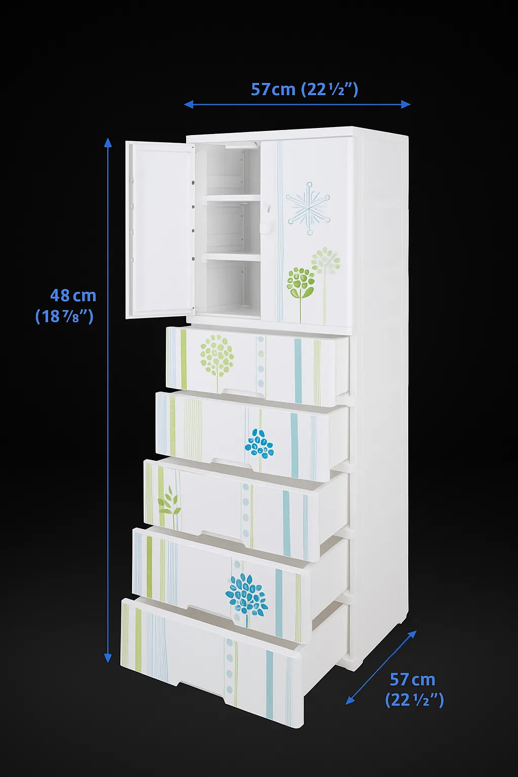 Bring order and style to your home with this Multi-Layer Plastic Storage Cabinet. Designed for both function and elegance, it features five spacious drawers and a top cabinet with shelves — perfect for organizing clothes, toys, linens, or baby essentials. The vibrant floral design adds a refreshing touch to any room, while the sturdy plastic structure ensures long-lasting use. Ideal for bedrooms, kids’ rooms, and nurseries.