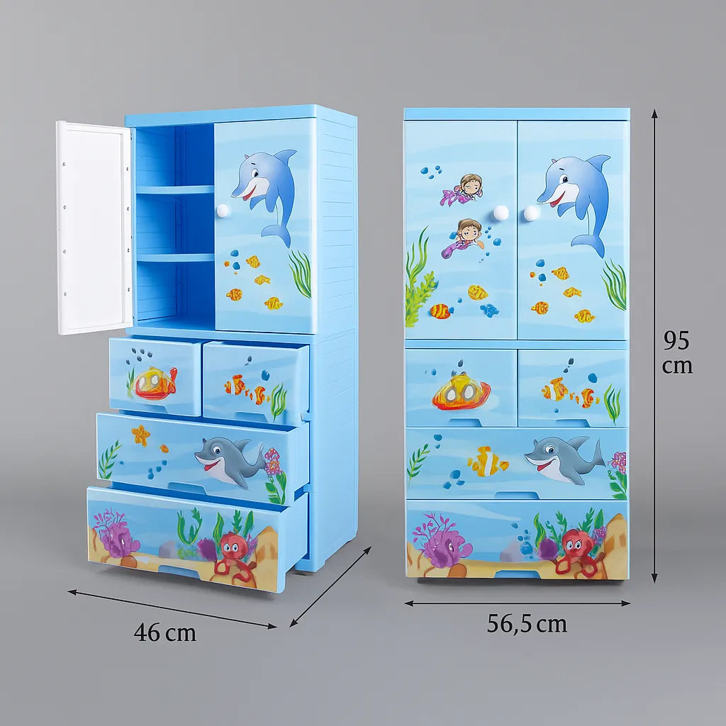 Bring the underwater world to your child’s room with this Ocean Theme Kids Storage Cabinet! Decorated with cute dolphins, fish, and sea plants, this cabinet adds color and creativity while keeping things organized. Perfect for toys, clothes, and books, it features multiple drawers and a top cabinet for versatile storage. Lightweight yet sturdy, it’s a playful and practical addition to any kids’ room or nursery.