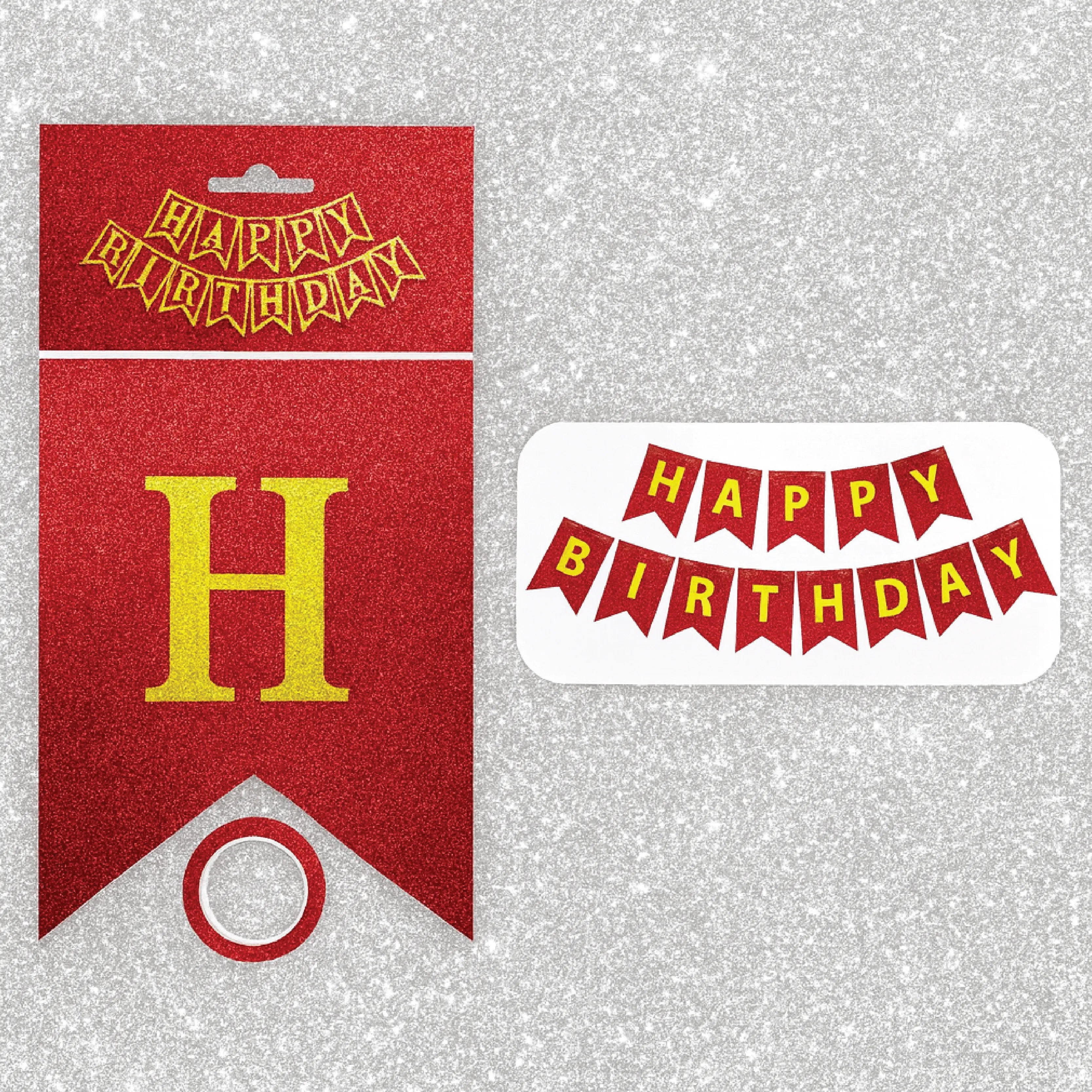 Celebrate in style with this stunning Red & Gold Glitter Happy Birthday Banner! Designed to add sparkle and elegance to any event, this banner features bold golden letters on a rich red glitter background that instantly brightens your party space. Each flag is pre-punched for easy stringing, making setup quick and effortless. Perfect for birthdays of all ages, this durable, reusable banner complements both indoor and outdoor decorations. Its vibrant colors and shimmer effect make it a must-have for your celebration backdrop.