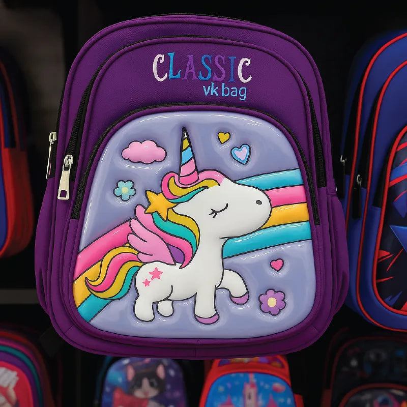 Let your child shine with the magical Unicorn Kids Backpack ππ¦π. Designed in a vibrant purple shade, this school bag features a super-cute unicorn print with rainbow and star details, making it every kidβs dream companion for school and outings. Spacious, lightweight, and durable β itβs the perfect mix of style and practicality for young learners.