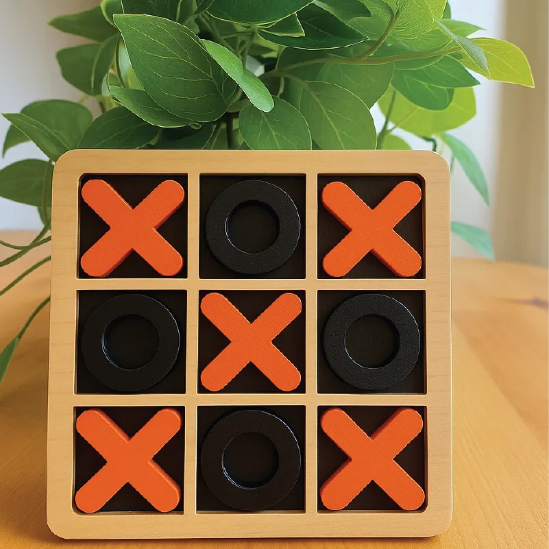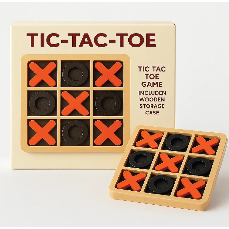 Enjoy endless fun and brain-teasing challenges with the Wooden Tic Tac Toe Game! This classic XO puzzle board is made from high-quality durable wood and comes with chunky, easy-to-handle X and O pieces. Perfect for kids and adults alike, it enhances strategic thinking, problem-solving, and family bonding.